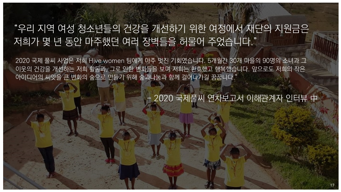 [마다가스카르 하이브 우먼 팀] 소녀들의 건강한 삶과 자립 프로젝트