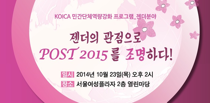 KOICA 민간단체역량강화 프로그램 <젠더의 관점으로 Post 2015를 조명하다> 포럼이 개최됩니다.