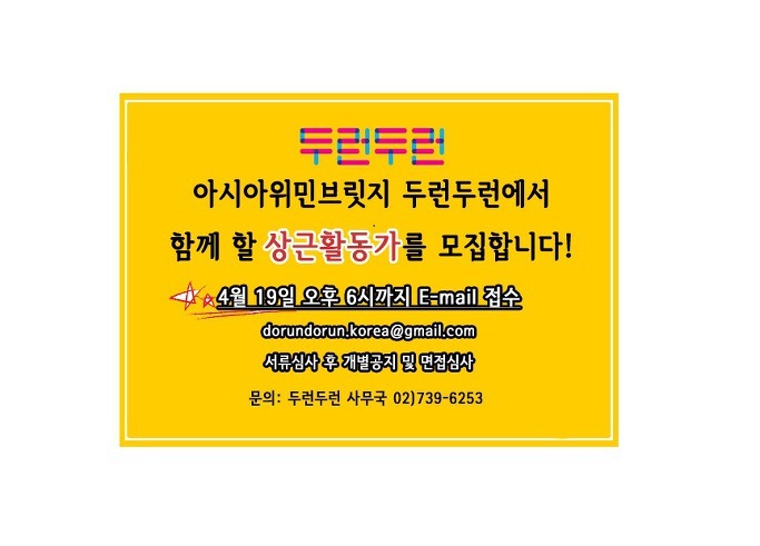 [채용공고] 사단법인 아시아위민브릿지 두런두런에서 함께 할 활동가를 모집합니다.